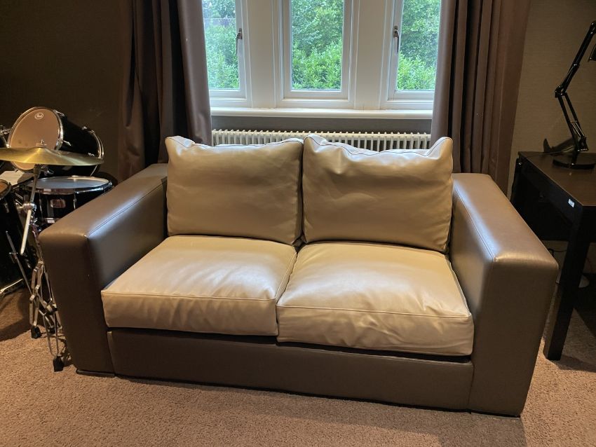 1 x Bespoke Heavy High Quality Sofa in Mocha Brown Faux Leather Upholstery - Ref: BLN125 - CL939 - NO VAT ON THE HAMMER - Location: Hale WA15