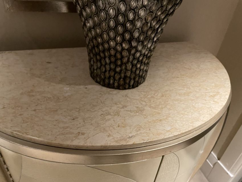 1 x Beautiful Semi-circular Cabinet with Marble Top - Ref: BLN147A - CL939 - NO VAT ON THE HAMMER - Location: Hale WA15