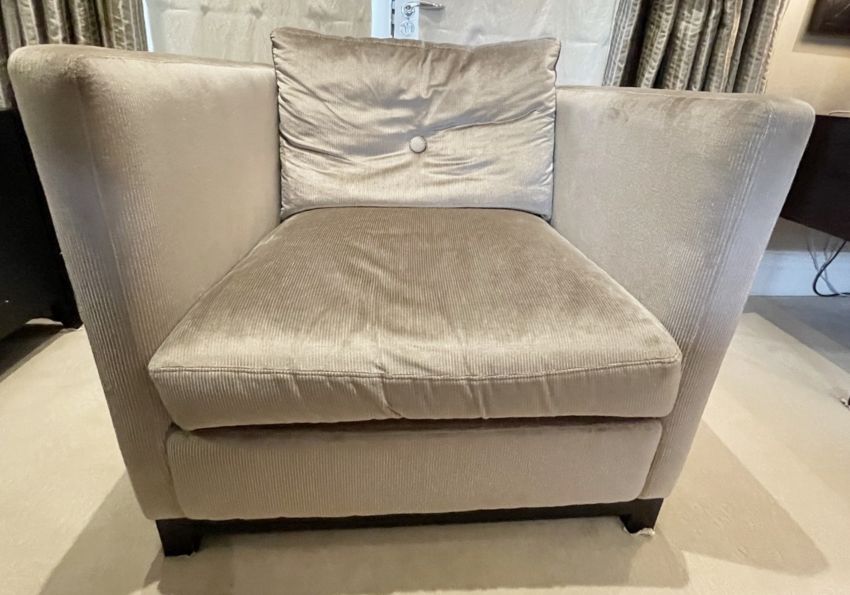 1 x Luxurious Golden Velvet and Cord Cubic Occasional Chair - Ref: BLN108 - CL939 - NO VAT ON THE HAMMER - Location: Altrincham WA14