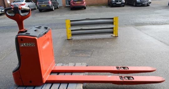 Product Description (for guidance only): The T20 pallet truck has a particularly rugged construction. For example, tiller and motor cover are made of fiberglass-reinforced materials and can work reliably and continuous for a long time, maneuvering, order picking, and transporting. The low chassis provides more safety. It covers all of the wheels so the user's feet do not come into contact with them. The tiller is mounted at a very low point on the truck. The operator is therefore at a safe distance from the pallet truck with the tiller folded down.