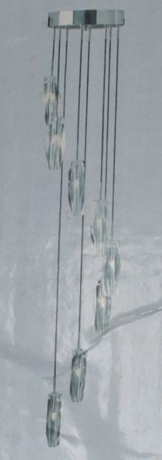 This Sculptured Ice 8 Light Chrome Fitting has 8 ice cube glass shades with a polished chrome ceiling plate that will reflect light from the halogen bulbs creating a gorgeous sparkle.