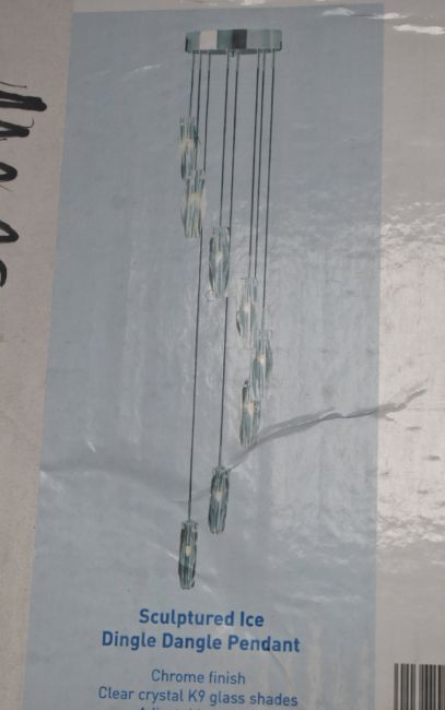 1 x 8 Light Sculptured Ice Dingle Dangle Pendant Light With A Chrome Finish - 125Cm (H) X 24Cm (W) - Original Retail £312 - Ref: K471/888-8 - CL011 - Location: Altrincham WA14