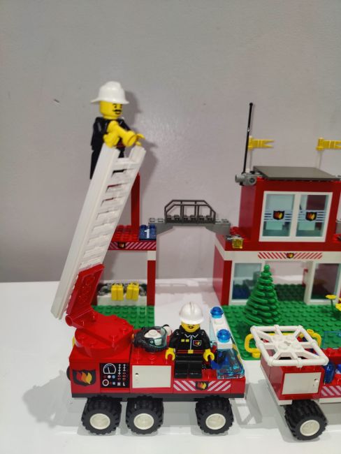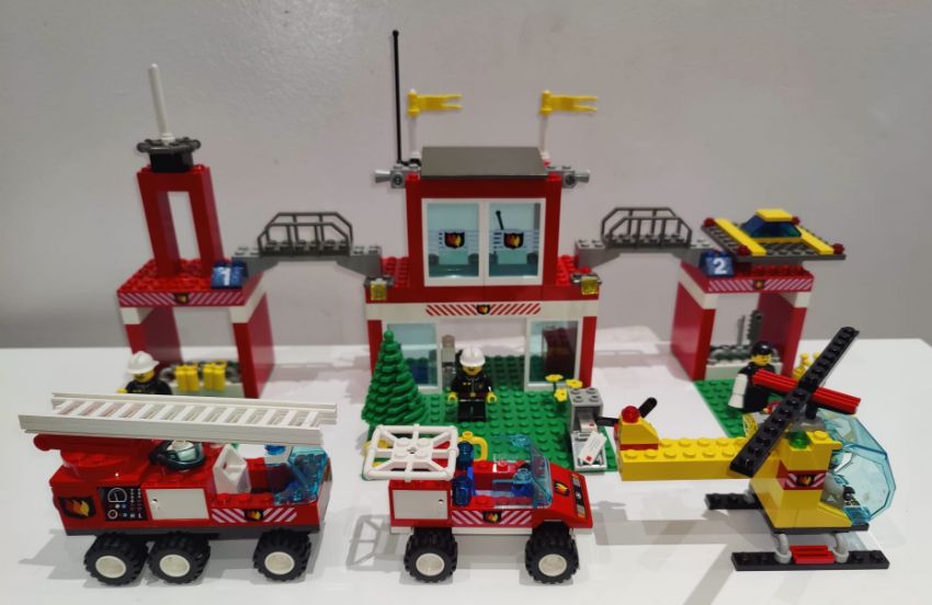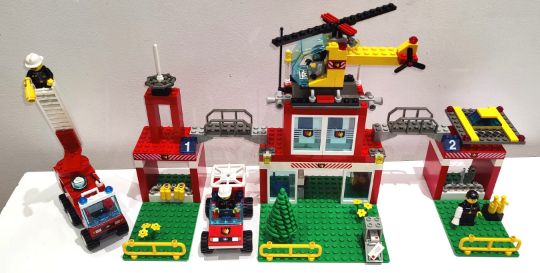 1 x Vintage LEGO Fire Station Set Features Fire Engine, Fire Car, Helicoptor and Mini Figures - Includes Original Instructions - Very Good Condition - CL010 - NO VAT ON THE HAMMER - Ref: JRSP290 - Location: Altrincham WA14