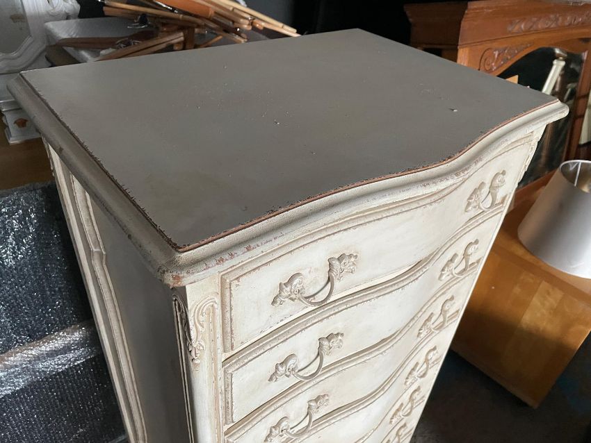 1 x Tall Vintage French-style Serpentine-fronted Chest of Seven Drawers, with a White Painted Finish - CL985 - NO VAT ON THE HAMMER - Location: Cheshire WA16