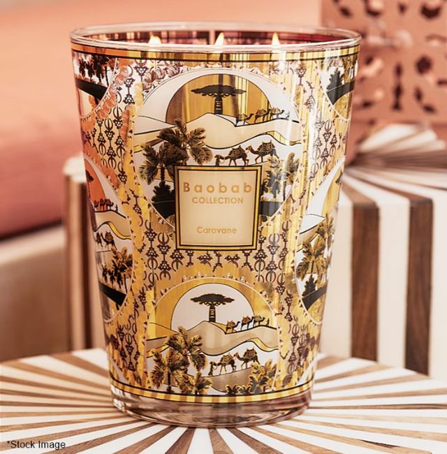 1 x BAOBAB 'Caravane' Large 3kg Luxury Scented Candle Featuring a 24-Carat-Gold Screen-printed Design - Unused Boxed Stock - Original Price £310.00 - Ref: HNB112/7678925 NHC01 - CL987 - Location: Altrincham WA14