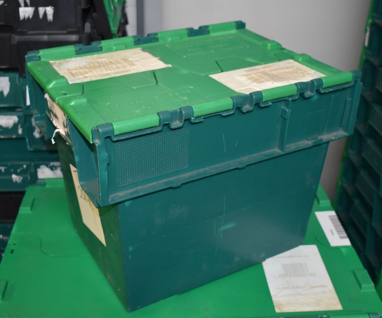 10 x Heavy Duty Compact Plastic Stackable Storage Box Containers With Attached Hinged Lids - Dimensions: H32 x L40 x W30 cms - Ref: NA - Original RRP: £176 - CL987 - Location: Altrincham WA14
