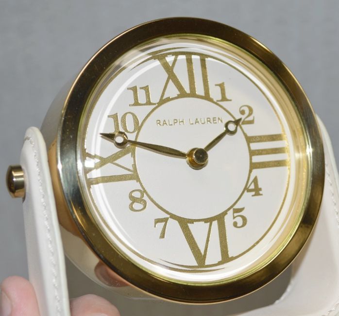 1 x RALPH LAUREN HOME Luxury 'Brennan' Solid Brass Clock with Calfskin Leather Stand - Original Price £955.00 - Unused Boxed Stock - Ref: HNB199/7286039 NHC01 - CL987 - Location: Altrincham WA14