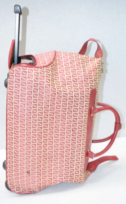 1 x FENDI 'Zucchino' Red Leather and Canvas Wheeled Luggage Travel Bag *See Condition Report* Ref: WHC102 - CL845 - NO VAT ON THE HAMMER - Location: Altrincham WA14