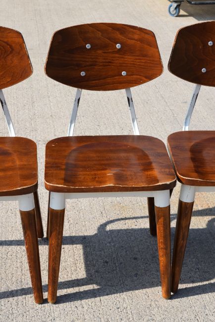 Set of 4 x Dining Chairs With a Dark Wood Finish and White Bases - Dimensions: H87 x W42 x D47 x SH48 cms - CL694 - Ref: WAH190 - Location: Altrincham WA14