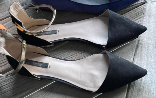 1 x Pair of ZARA Basic Collection Womens Flat Pointed Toe Black Suede D'Orsay Shoes, Size EU 41 / UK 8.5 - CL985 - NO VAT ON THE HAMMER - Location: Cheshire WA16