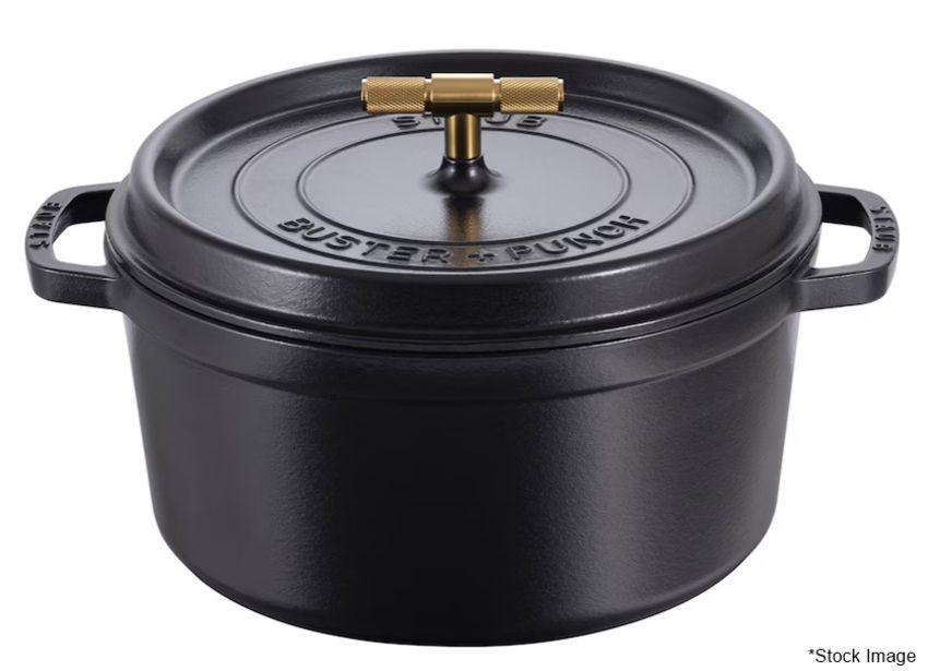 1 x STAUB / BUSTER+PUNCH Luxury Cast Iron ⌀28cm Cocotte with Lid and Brass T-Bar Handle - Original Price £379.00 - Unused Boxed Stock - Ref: HNB109/7693025 NHC01 - CL987 - Location: Altrincham WA14