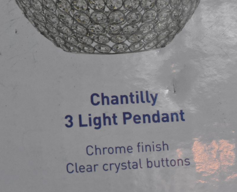 1 x Chantilly 3 Light Pendant In A Chrome Finish With Clear Crystal Buttons - Original Retail £216 - Ref: K524/9163-3CC - CL011 - Location: Altrincham WA14