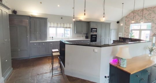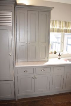 The kitchen units have been previously been handpainted in Grey, but would benefit from updating. There is also huge potential to strip the woodwork back to it's original Pippy Oak surface as shown on Image #10 taken before the units were repainted.