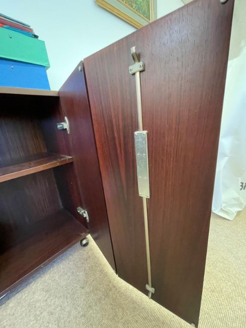1 x Vintage Scandinavian Sideboard Featuring Bifold Lockable Doors and Ball Castor Feet - Ref: DRS145 - CL1003 - Location: Altrincham WA14