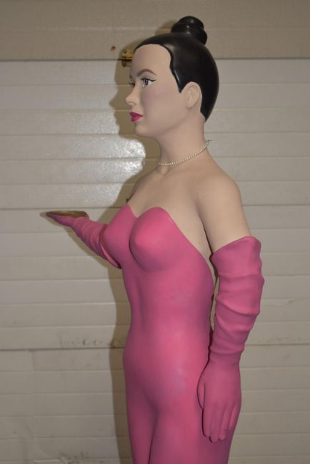 1 x Life Size Female Statue Wearing a Marilyn Monroe 1950's Style Dress Whilst Holding a Silver Serving Tray - Life Size Standing Approx 5'11" - CL007 - Ref: BS451 - Location: Altrincham WA14