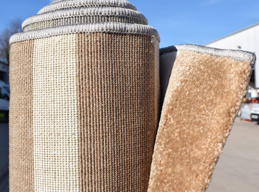 1 x GINO FALCONE 'MoveONE 1' Striped Carpet Rug in Brown & Cream with Grey Trim - Dimensions: 160 x 235cm - New / Unused Stock - Ref: WHC117 - CL1004 - Location: Altrincham WA14