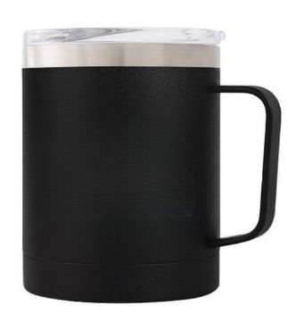 330ml double walled stainless steel mug in matt finish with integrated handle. Clear push fit lid with slide action sipper.